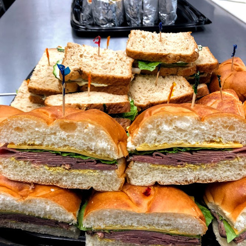 Ready for a corporate lunch catering, curried chicken salad and portobello mushroom and veggie wraps. Roast beef and cheddar and turkey with avocado sandwiches. Book your next corporate event with us now!